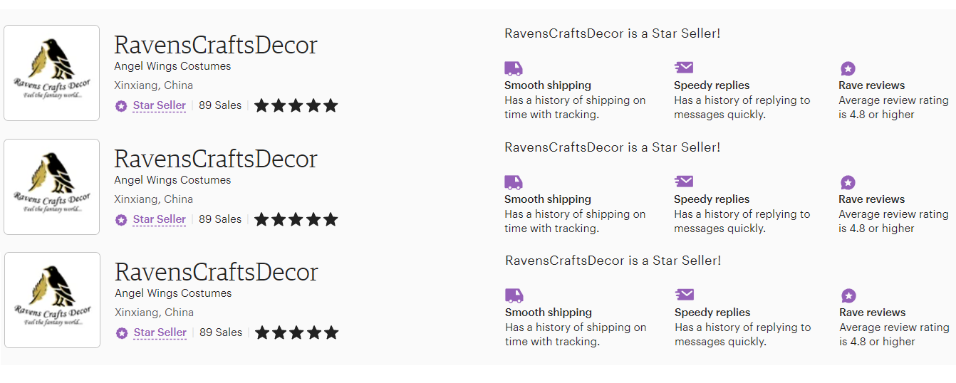 RavensCraftsDecor is dedicated team who specializing in creating high quality angel wings from feathers and offering wide variety of options such as many different styles, availability to change size and color, make wings bendable to form them how you want it or even create customized wings from your given example.